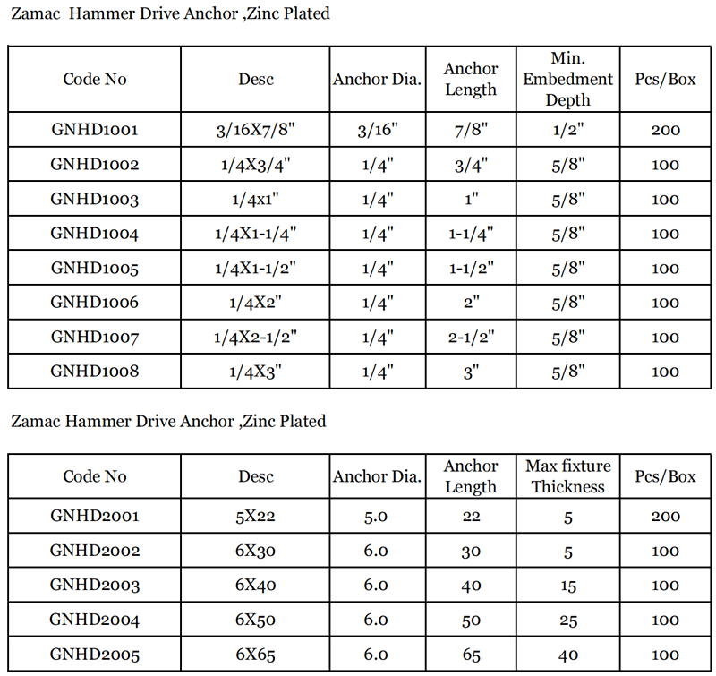 MATERIAL BODY-ZAMAC 5 NAIL-Q215 & 304 FINISH ZINC PLATED